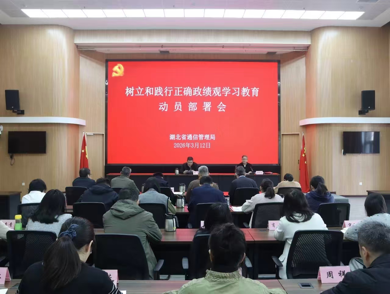 2026年3月12日,湖北省通信管理局召开树立和践行正确政绩观学习教育动员部署会,深入学习贯彻习近平总书记关于树立和践行正确政绩观学习教育的重要讲话和重要指示精神,认真落实工信部学习教育动员部署会议精神,安排部署全局学习教育工作。局党组书记、局长吴俊出席会议并讲话,局党组成员、副局长梁长岛主持会议。