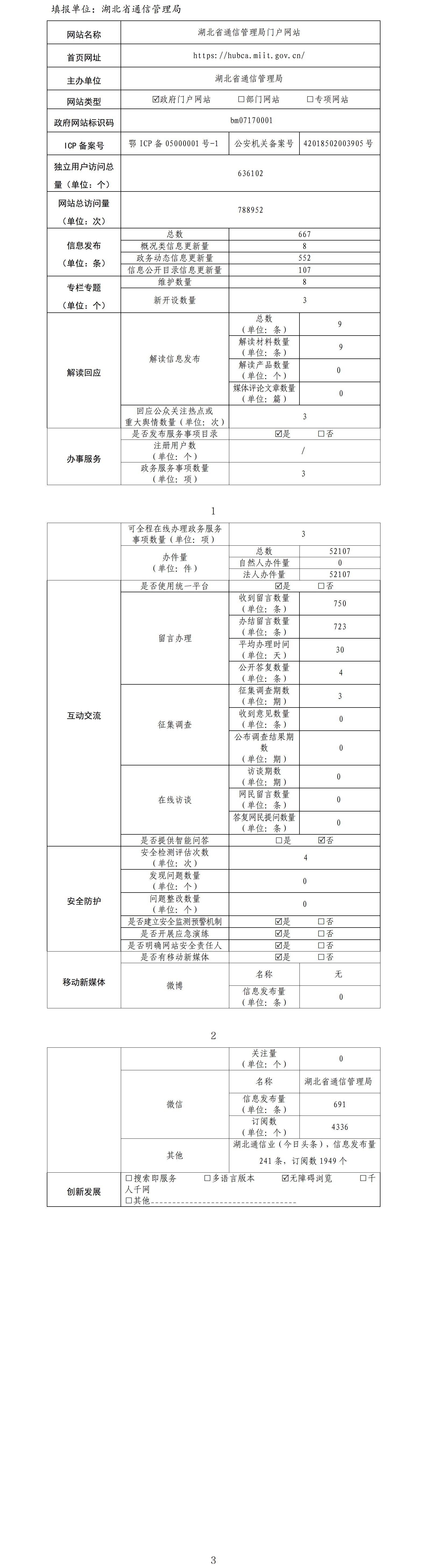 湖北省通信管理局网站工作2022年度报表